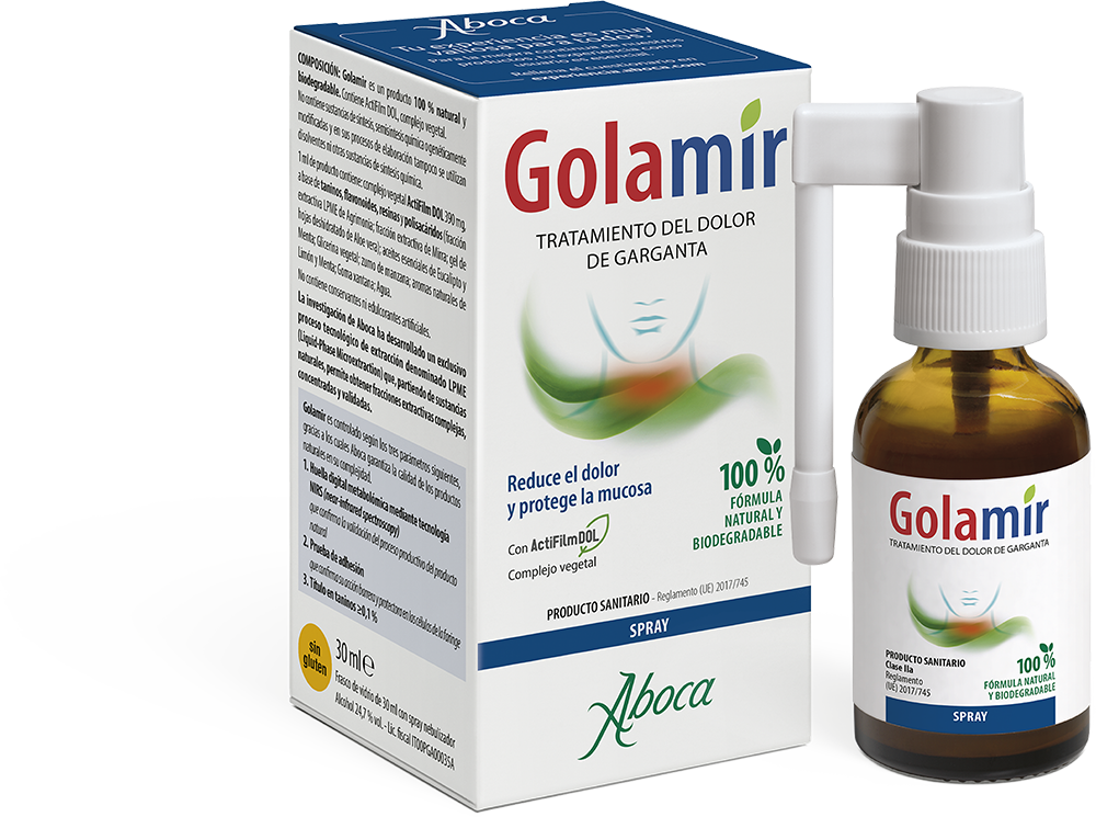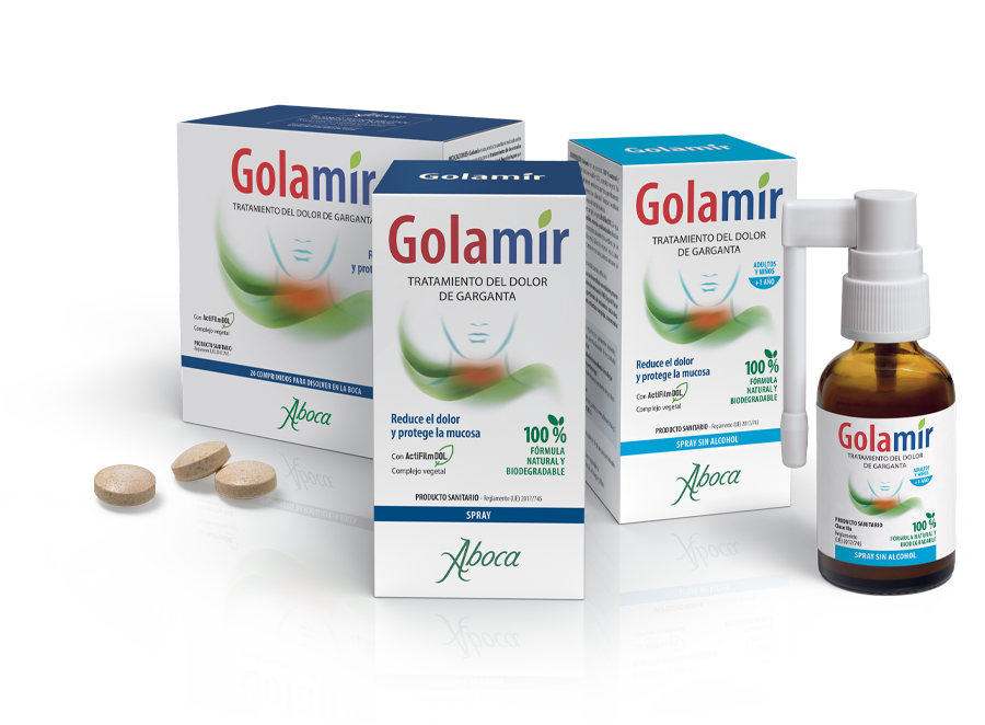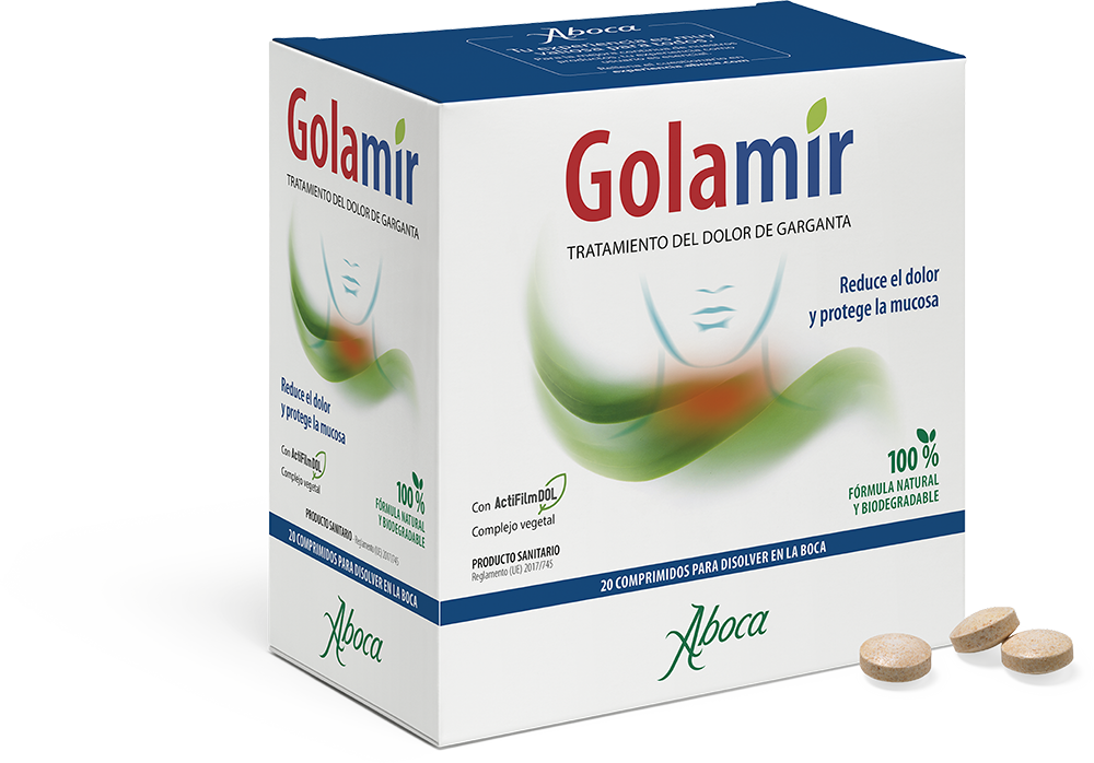 Golamir calma rápidamente el dolor de garganta y protege la mucosa.